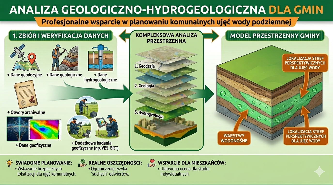 Zarządzanie przestrzenią oraz zasobami naturalnymi na szczeblu samorządowym to zadanie wymagające oparcia w twardych, rzetelnych danych naukowych i inżynieryjnych. Jako eksperci z wieloletnim doświadczeniem w branży doskonale wiemy, że każda jednostka samorządu terytorialnego potrzebuje rzetelnej wiedzy o warunkach geologicznych i hydrogeologicznych swojego terenu. Stanowi to absolutną podstawę odpowiedzialnego projektowania inwestycji, gwarantuje bezpieczeństwo obiektów budowlanych oraz warunkuje zrównoważony rozwój całego regionu.